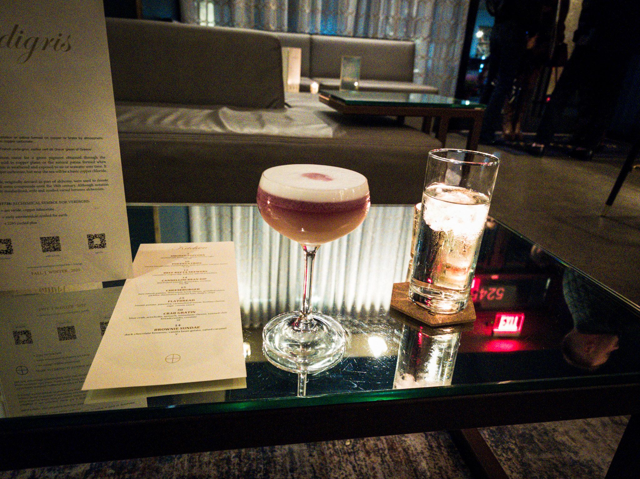 I started with the Oaxaca Old Fashioned—mezcal leaning, a little smoky, still clean. Then the New York Sour, I was in that state of mind. There’s something about a whiskey sour when it’s done properly—balanced, not too sweet, citrus sharp enough to wake it up, and that float on top if they care enough to do it right. It’s a classic for a reason.